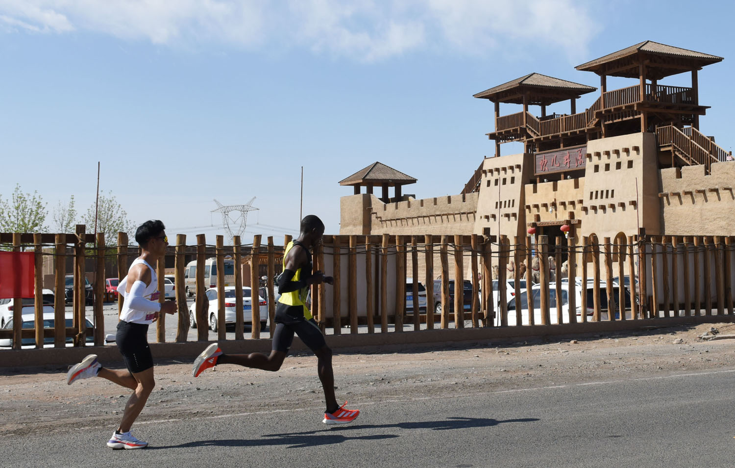 選手在蘇公塔景區(qū)賽道上奔跑。葡萄熟了/吐魯番市融媒體中心記者 劉健 攝