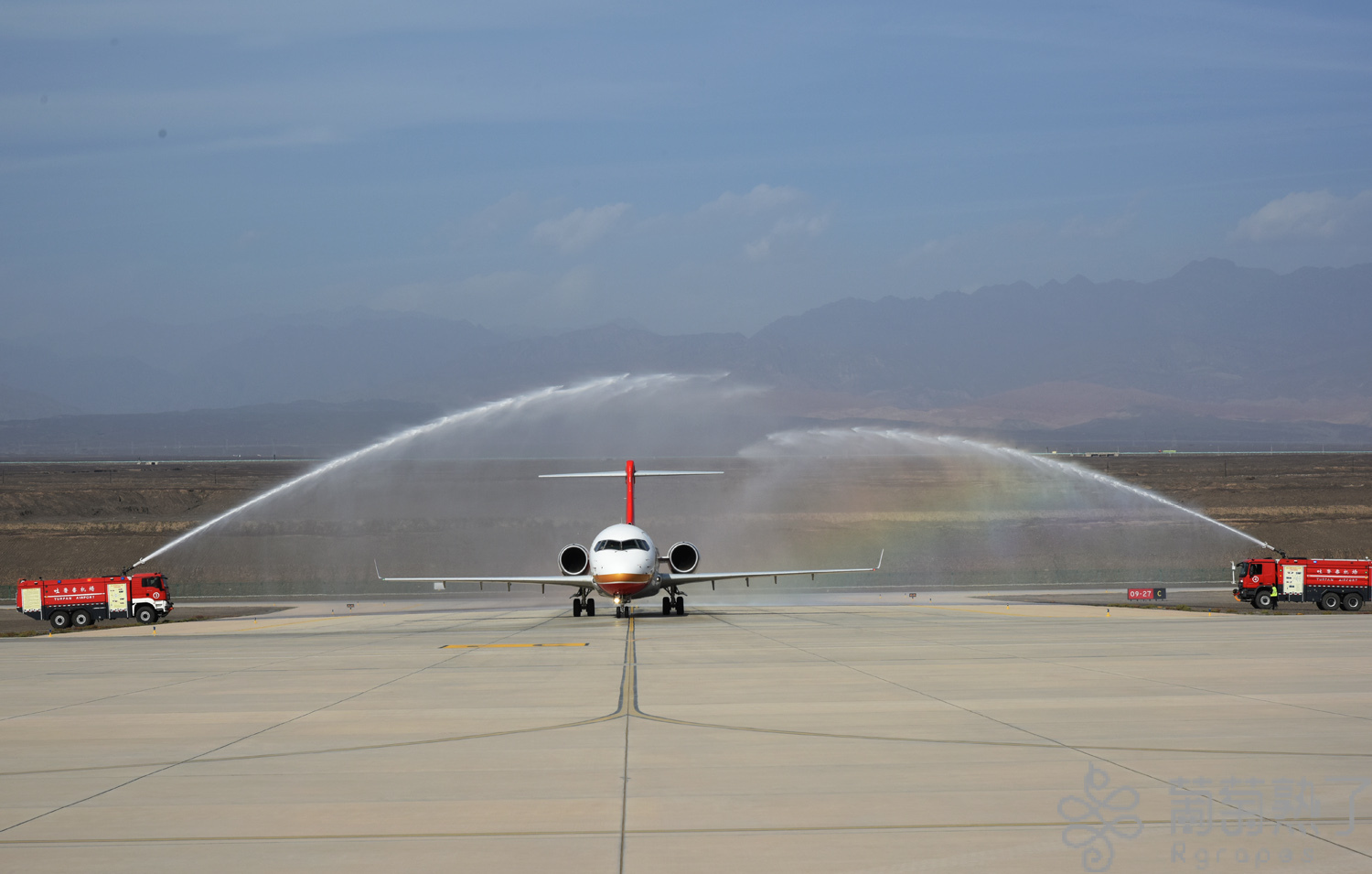 “吐魯番號”主題飛機過水門。葡萄熟了/吐魯番市融媒體中心記者 劉健 攝