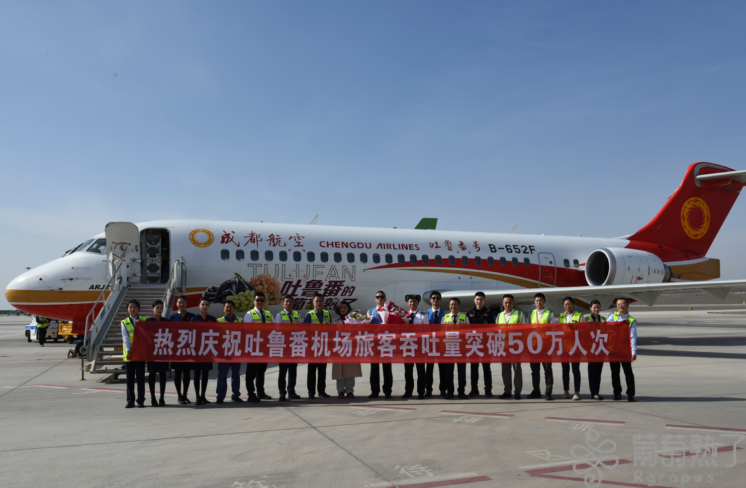 10月13日,吐魯番機場年旅客吞吐量成功突破50萬人次,創下通航以來旅客吞吐量新高。近年來,吐魯番市高度重視航空產業發展,將吐魯番機場打造成為新疆區域航空樞紐和航空貨運機場目標,目前高峰運營航線33條,通航城市38個。葡萄熟了/吐魯番市融媒體中心記者 劉健 攝