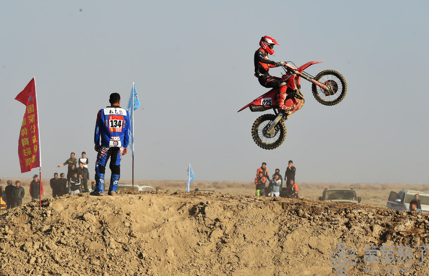11月10日,在艾丁湖景區,車手們參加摩托車超級場地障礙賽。當日,2024新疆·吐魯番第13屆環艾丁湖摩托車拉力賽開賽。比賽賽期4天,賽段覆蓋吐魯番市一區兩縣,總里程1000公里,設有超級場地障礙賽、拉力賽和沙漠爬高賽等項目。來自全國各地摩托車運動協會、俱樂部、車隊的100余名賽車手及摩托車愛好者云集吐魯番,共赴一場“速度與激情”的狂歡。葡萄熟了/吐魯番市融媒體中心記者 劉健 攝