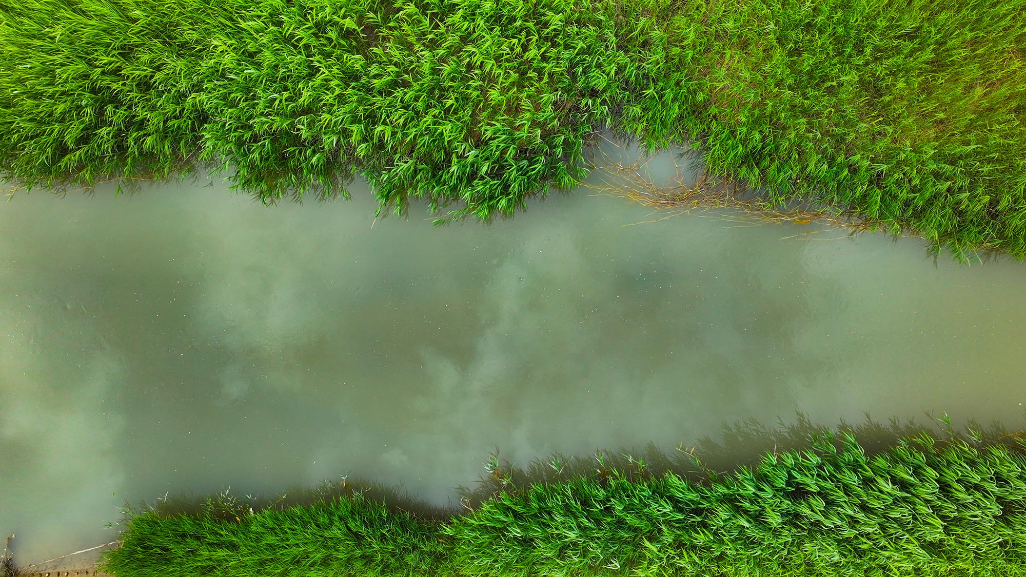 白楊河內蘆葦青翠河水潺潺。