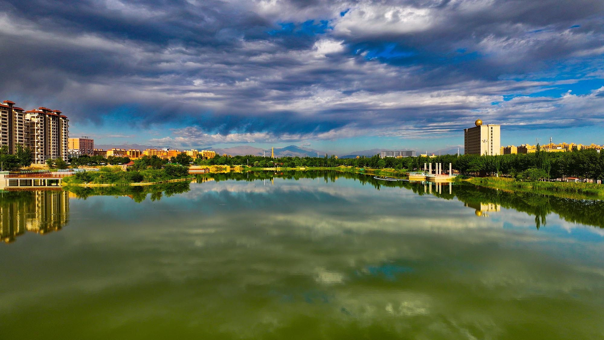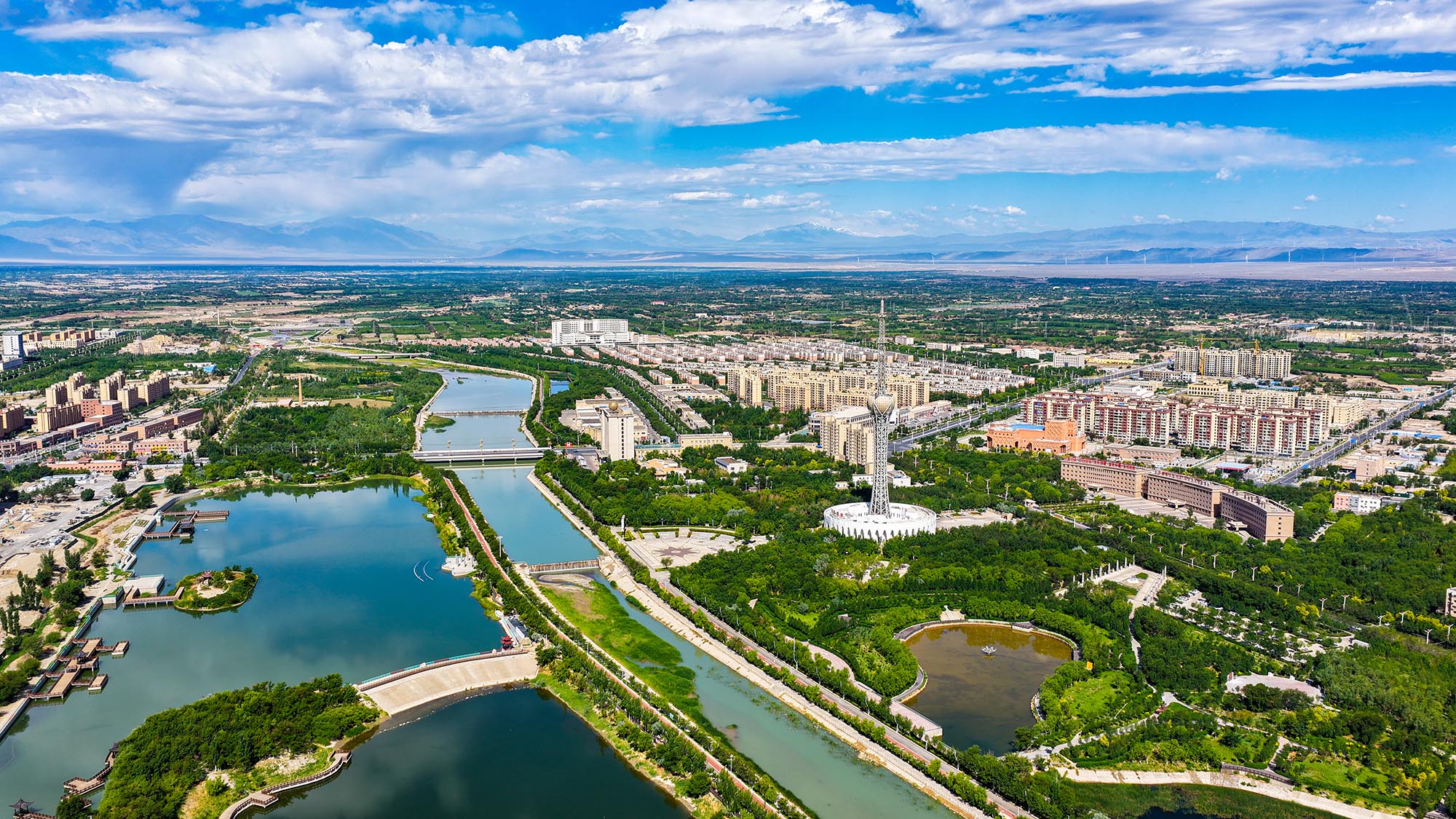 5月21日,托克遜縣天空澄澈如鏡,白楊河碧波蜿蜒穿城而過,流云碎影在河面游弋,恍若天地間鋪展的藍白綢緞。野鴨等候鳥掠過青翠的蘆葦蕩,翅尖點破潺潺水韻,為這座絲路小城注入靈動生機。北望天山博格達峰,古白水澗道兩側呈現生態奇觀,曾經裸露的戈壁灘正被綠植覆蓋,高聳的風力發電機列隊旋轉,現代清潔能源與千年古道相映成趣。向西而望,汩汩清流浸潤出翡翠般的綠洲帶,沿著古天山道向西延展。托克遜縣通過水系治理與生態修復,在天山腳下揮毫書寫著綠意盎然的生態長卷。(文/圖 托克遜縣融媒體中心記者李靖海 胡國凱)