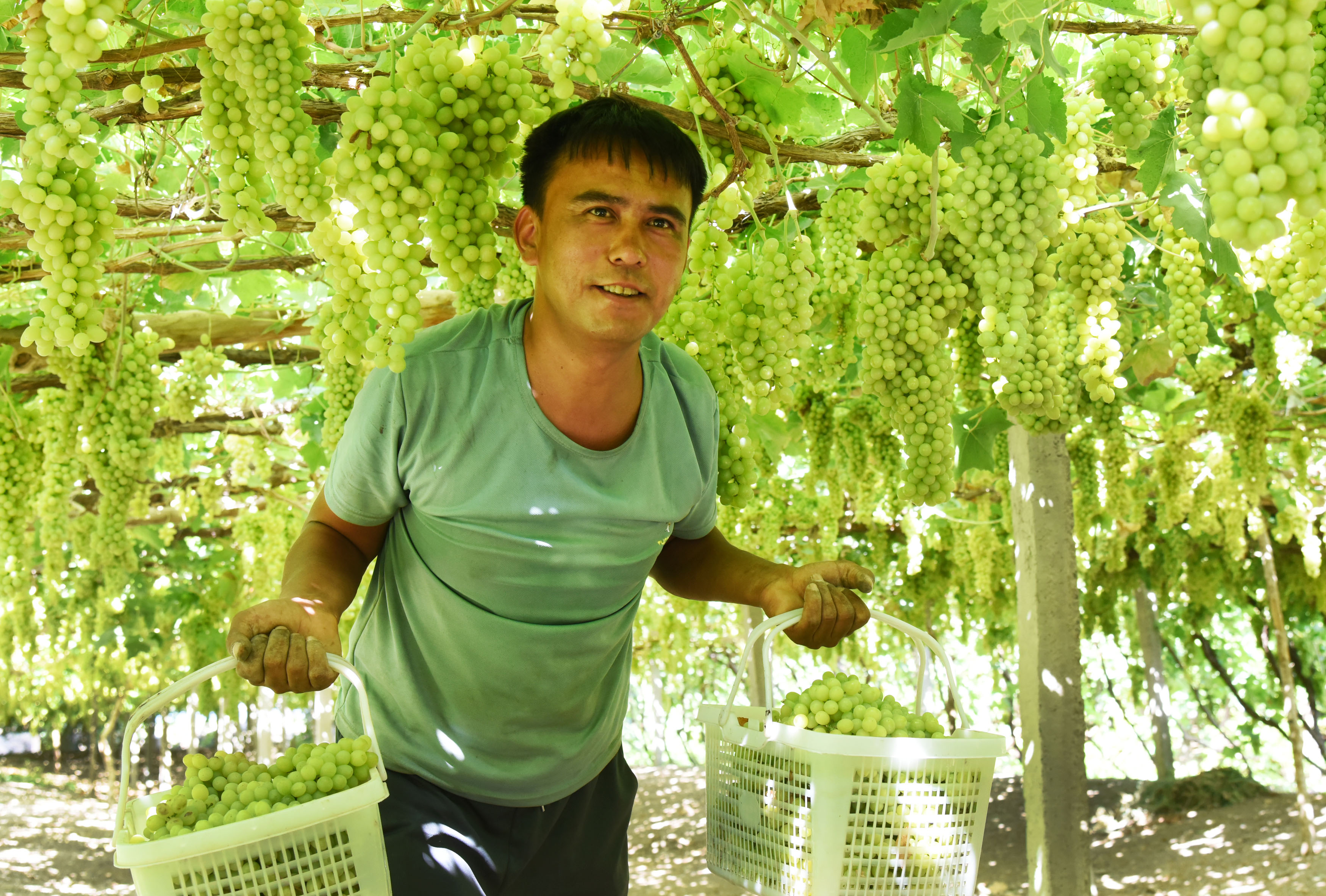 7月16日,高昌區(qū)葡萄鎮(zhèn)巴格日社區(qū)葡萄種植基地,果農(nóng)在采摘成熟的葡萄。吐魯番市融媒體中心記者 劉健 攝