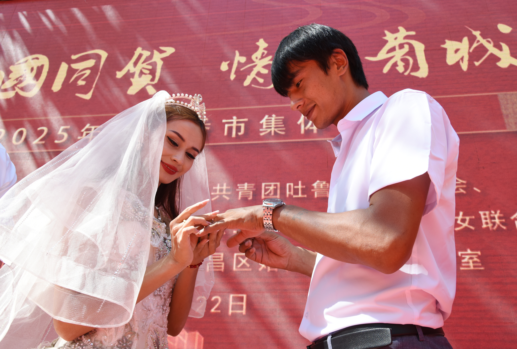 新人互戴戒指。 吐魯番市融媒體中心記者 劉健 攝