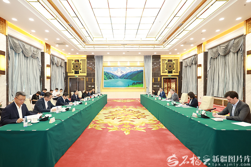 8月28日,自治區黨委書記陳小江在烏魯木齊會見來新疆參訪的澳大利亞駐華大使吉思德。石榴云/新疆日報記者 崔志堅攝