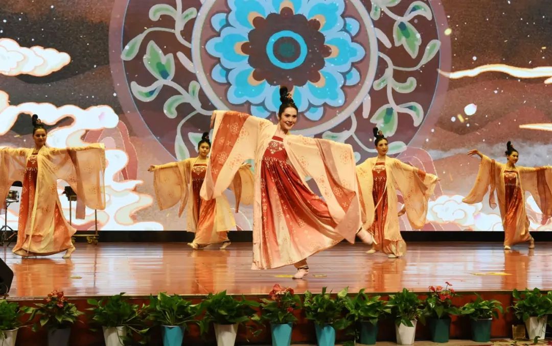 2月8日,在2024年春節(jié)團(tuán)拜會上,集體舞《赤亭古韻》。吐魯番市融媒體中心記者 劉健 攝
