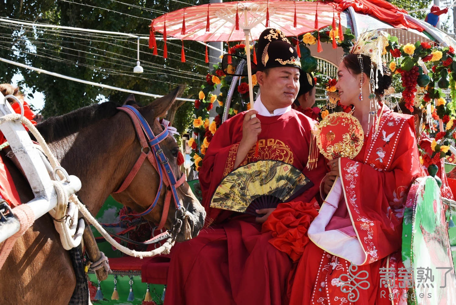 8月10日,新人們乘坐馬車在高昌區街頭巡游。葡萄熟了/吐魯番市融媒體中心記者 劉健 攝