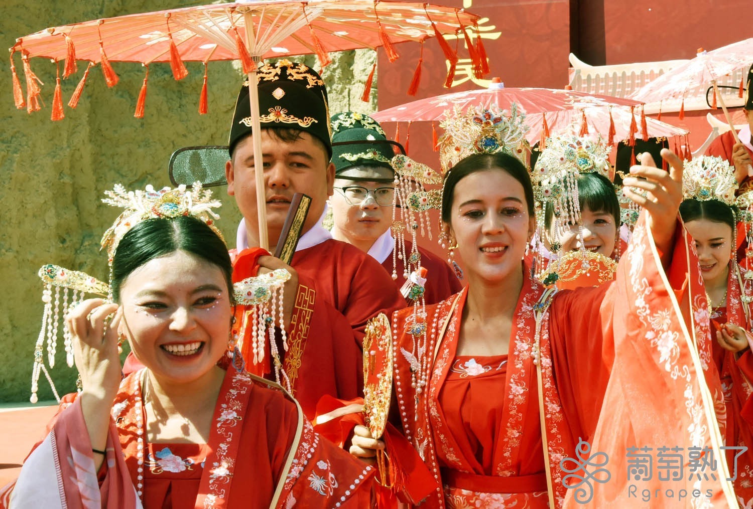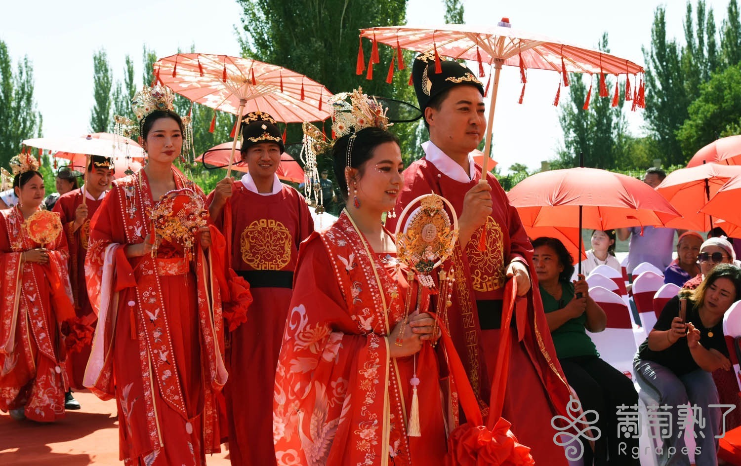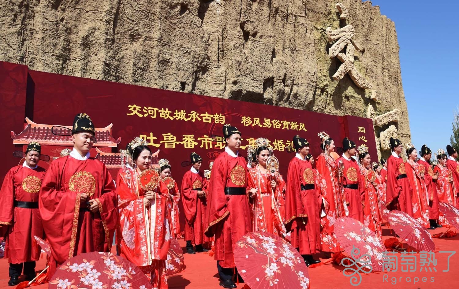 8月10日,隆重而浪?漫的集體婚禮在交河故城景區舉行。葡萄熟了/吐魯番市融媒體中心記者 劉健 攝