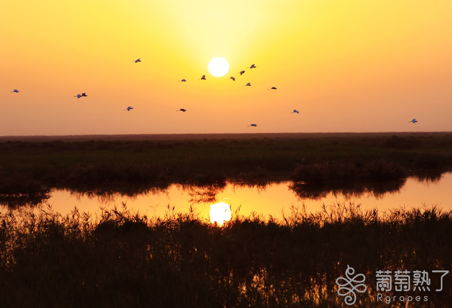 8月26日,白鷺在夕陽下的艾丁湖濕地棲息。葡萄熟了/吐魯番市融媒體中心記者 朱福平 攝