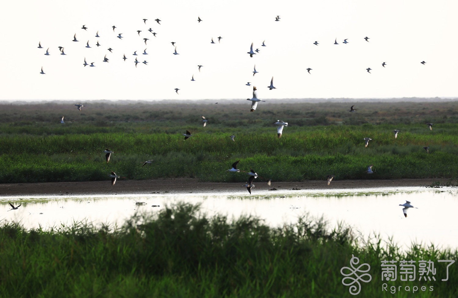 8月26日,候鳥在艾丁湖濕地棲息。葡萄熟了/吐魯番市融媒體中心記者 劉健 攝