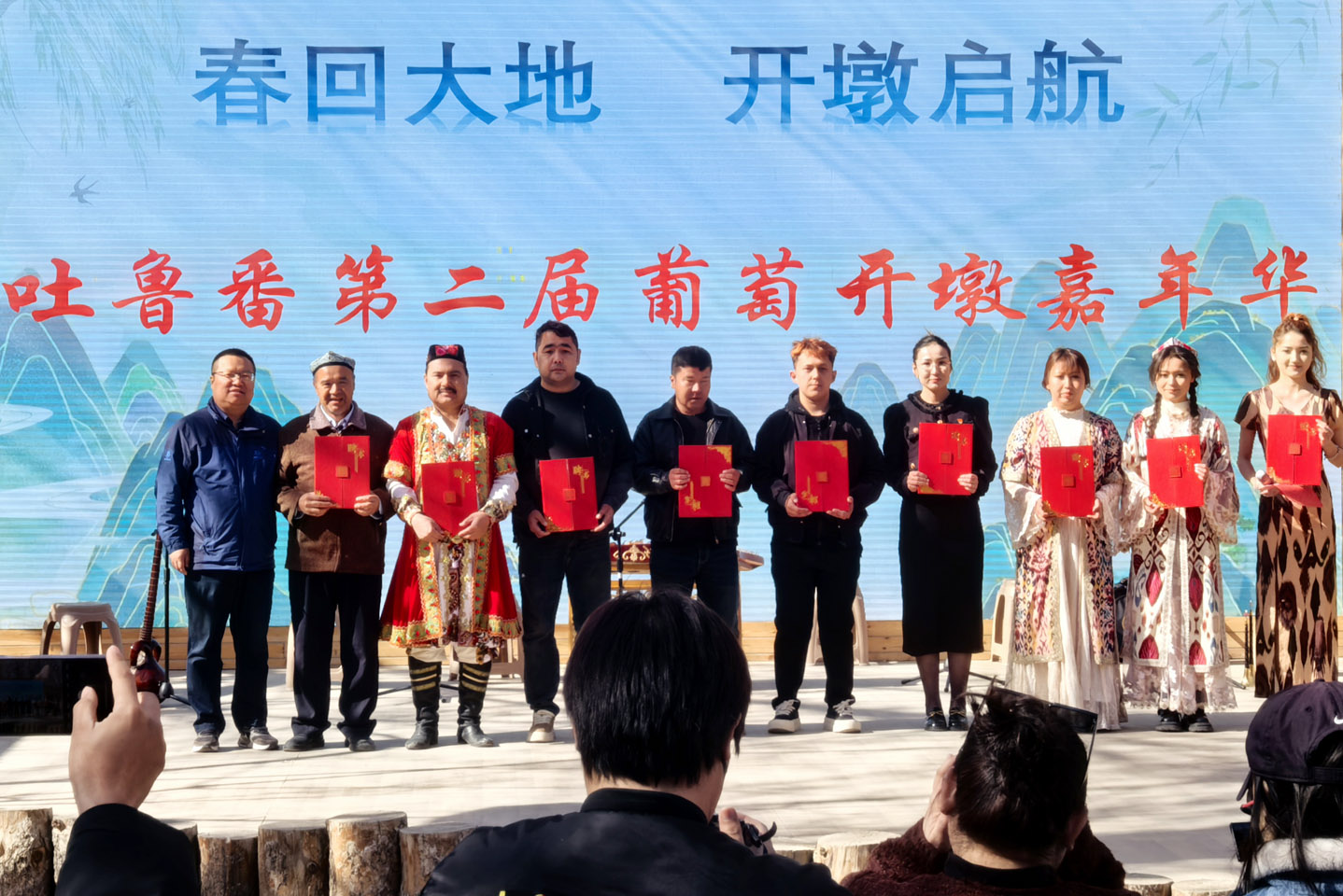 3月15日,一批優秀旅游推介官受到表彰。當日,吐魯番第二屆葡萄開墩嘉年華活動在葡萄溝景區啟幕。吐魯番市融媒體中心記者 劉健 攝