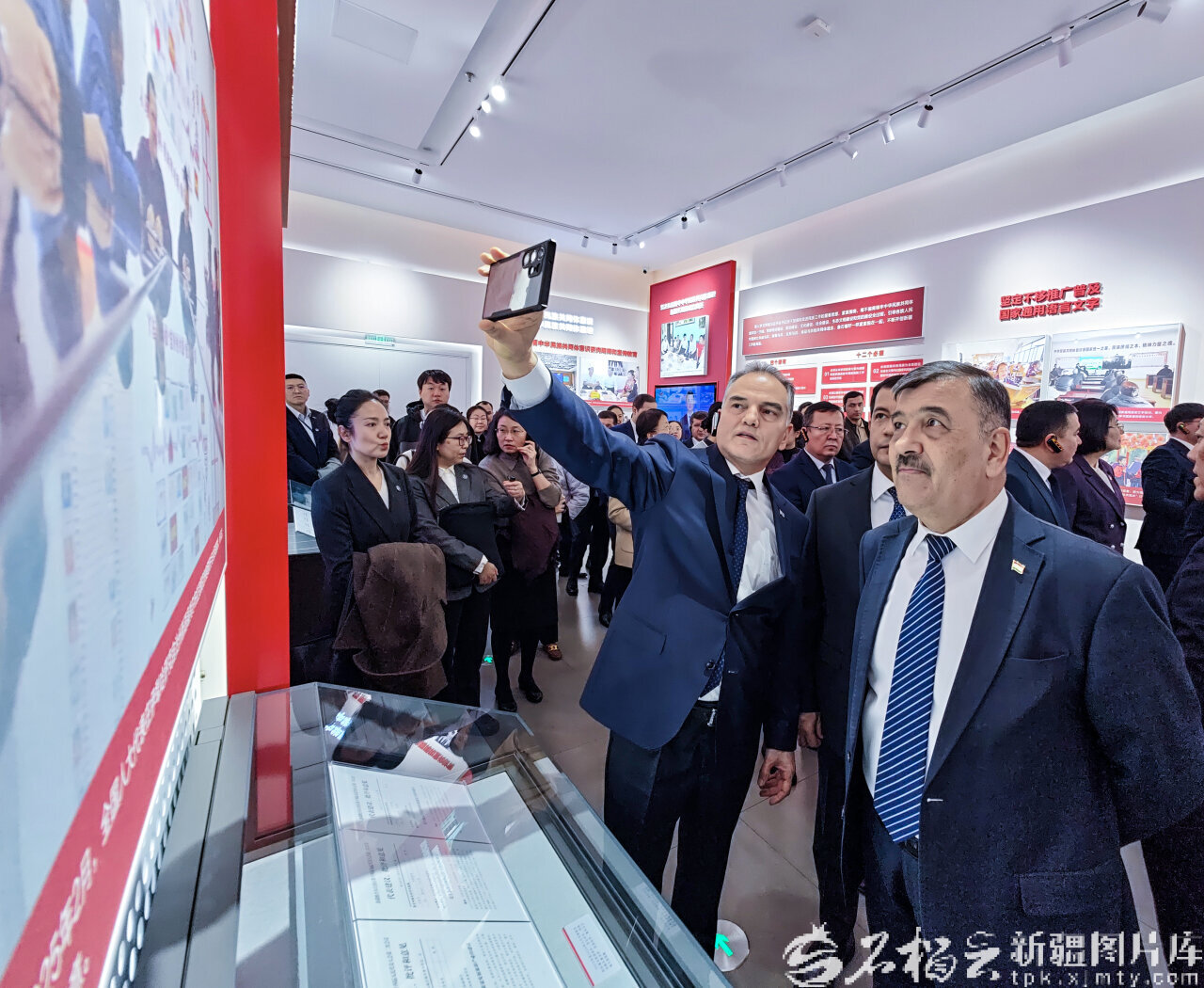石榴云/新疆日?qǐng)?bào)訊(記者 周鵬攝影報(bào)道)11月5日,參加第十二屆中國(guó)—中亞合作論壇的多國(guó)代表團(tuán)嘉賓走進(jìn)新疆維吾爾自治區(qū)成立70周年主題成就展現(xiàn)場(chǎng),通過(guò)豐富的實(shí)物展品、翔實(shí)的數(shù)據(jù)圖表及生動(dòng)的影像資料,沉浸式感受新疆70年來(lái)的滄桑巨變,為深化合作注入新共識(shí)。