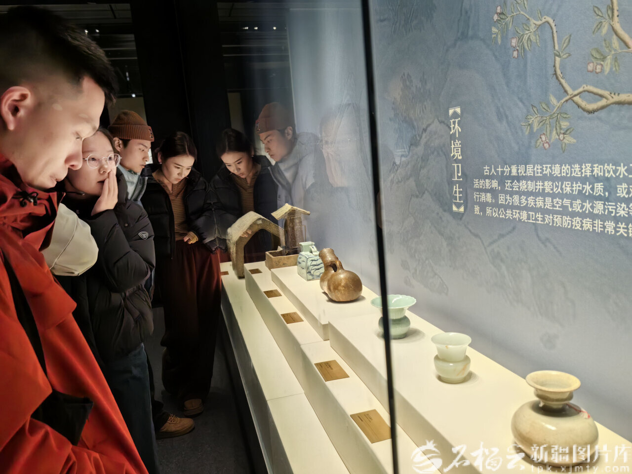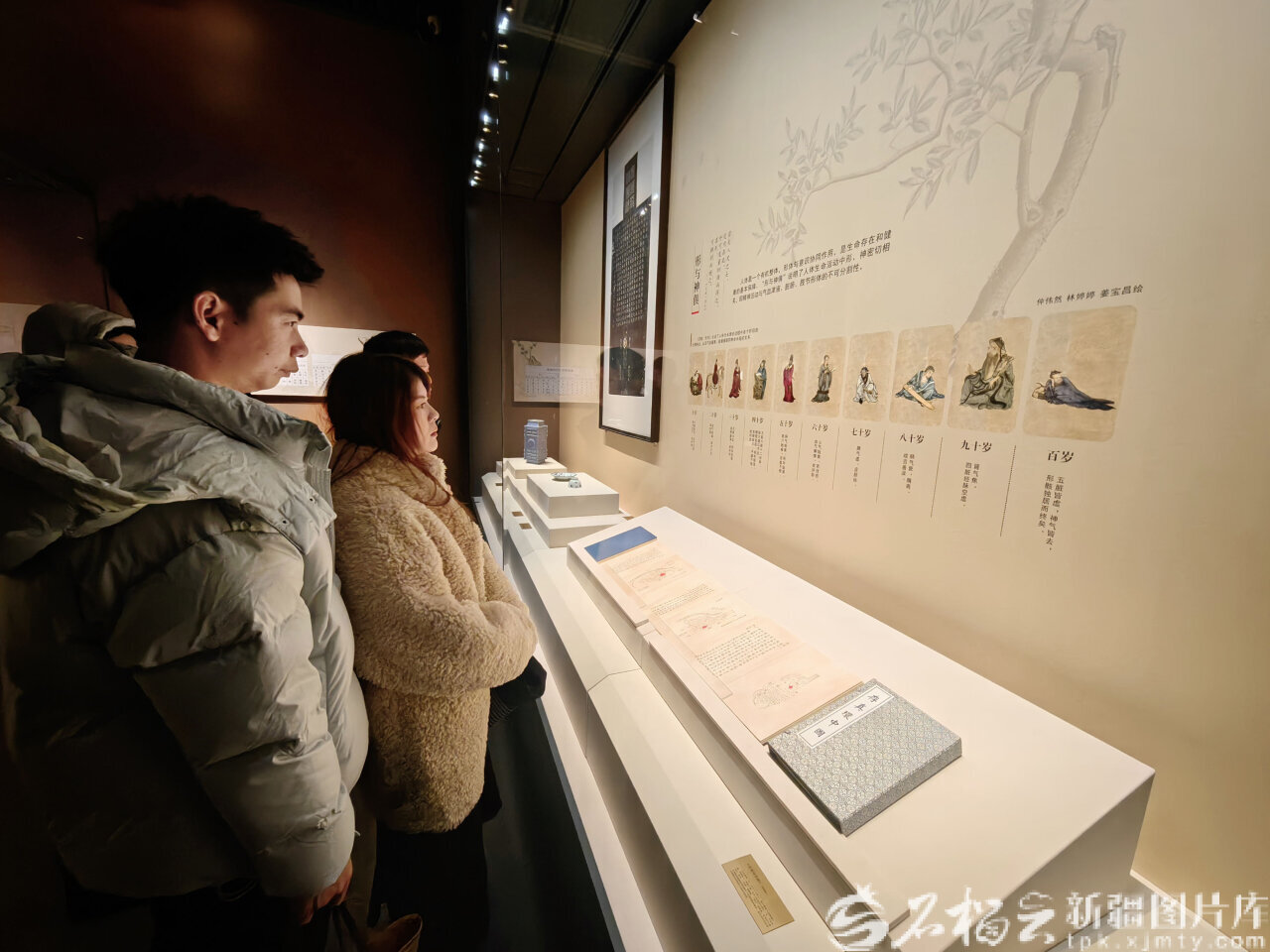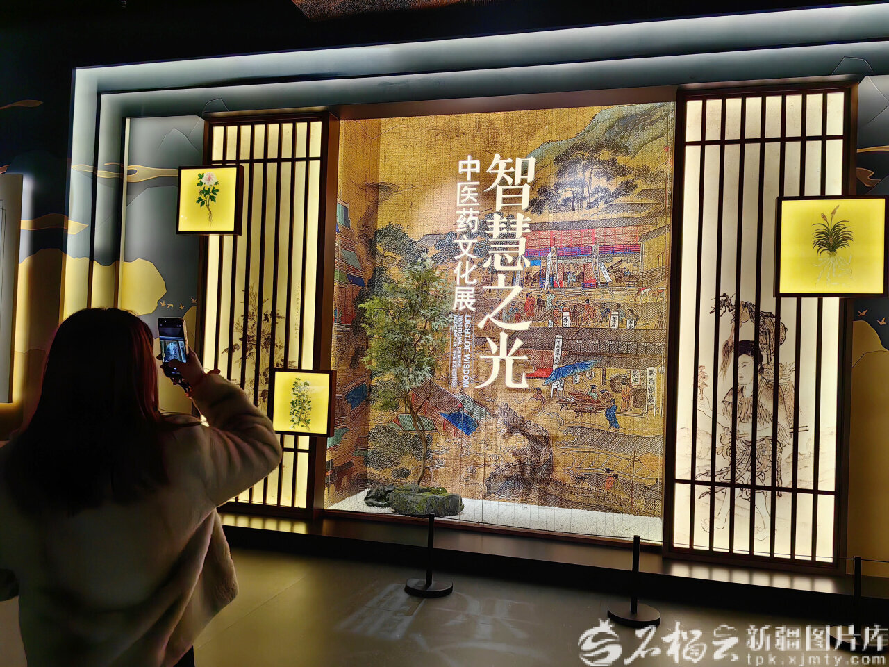 11月8日,在新疆博物館,市民在“智慧之光——中醫藥文化展”前拍照打卡。